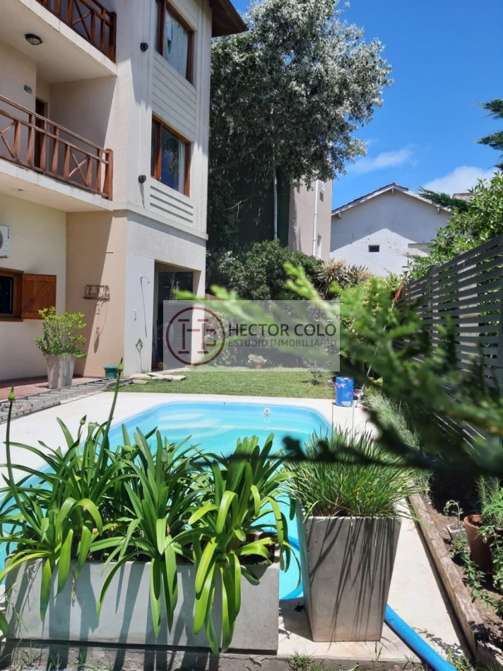 el complejo cuenta con jardin y piscina.