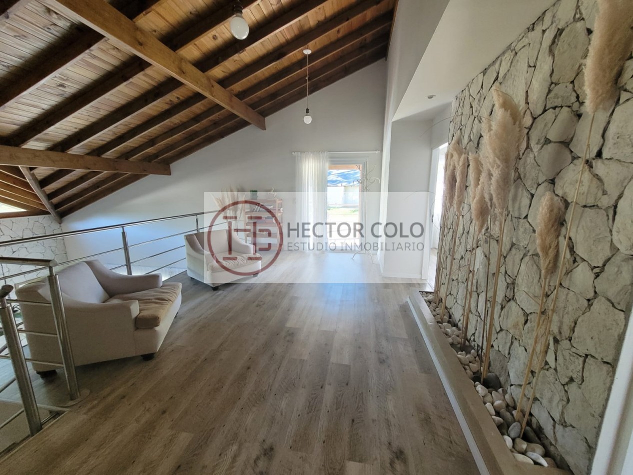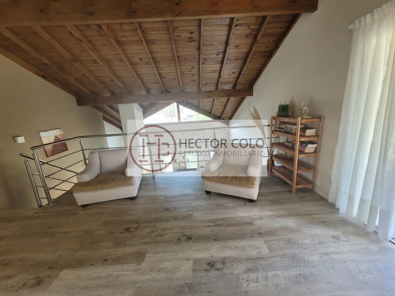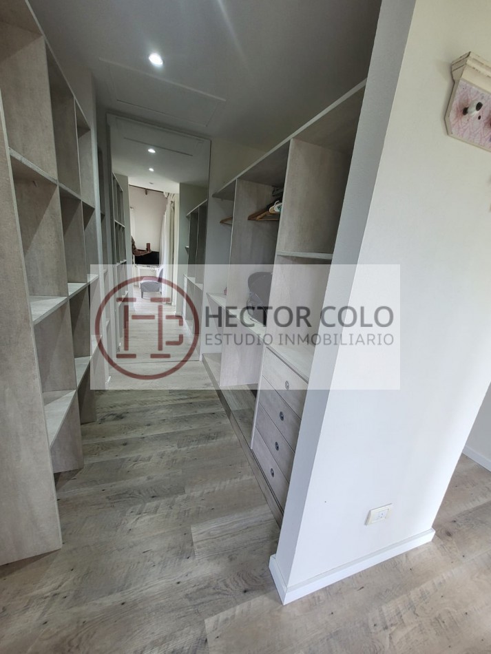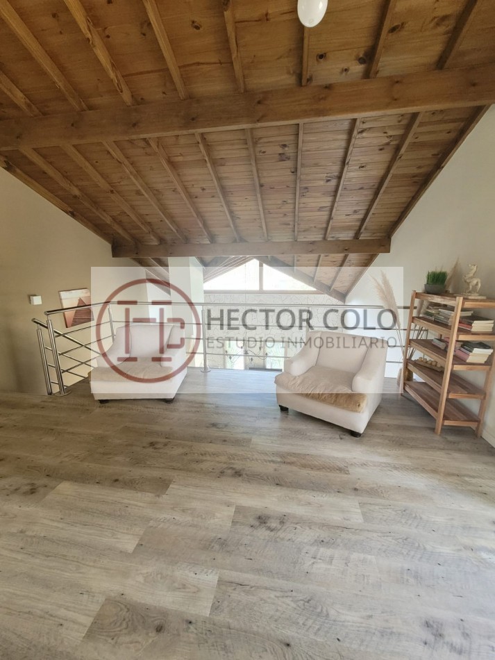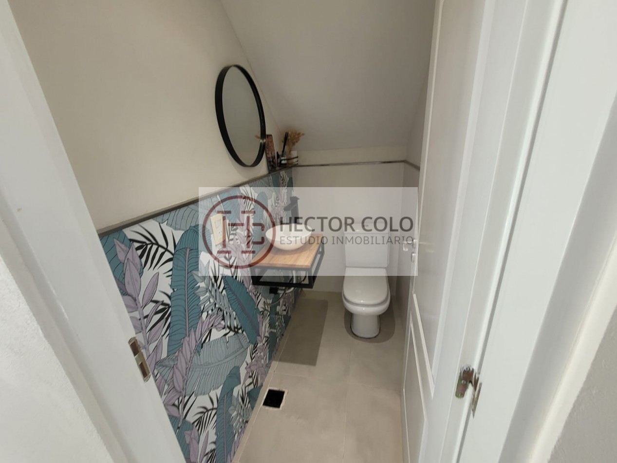 En planta alta encontramos un cómodo playroom con balcón, un dormitorio con placard y baño compartido de doble circulación, y el dormitorio principal en suite con vestidor y terraza privada. La propiedad posee calefacción por radiadores, aportando confort durante todo el año.