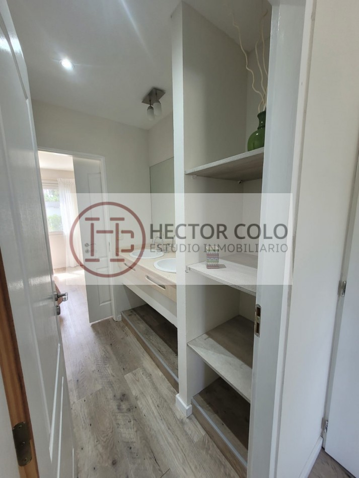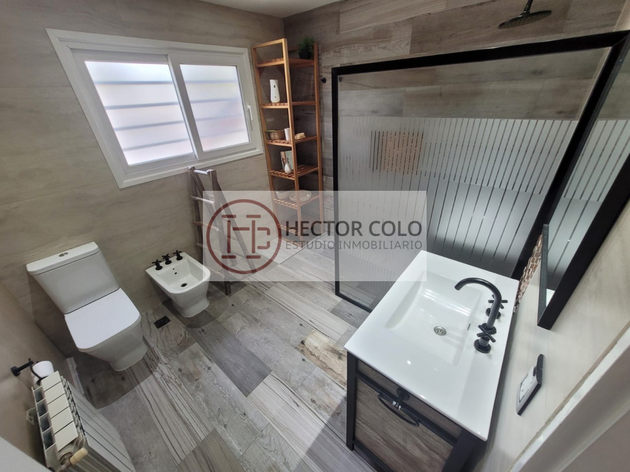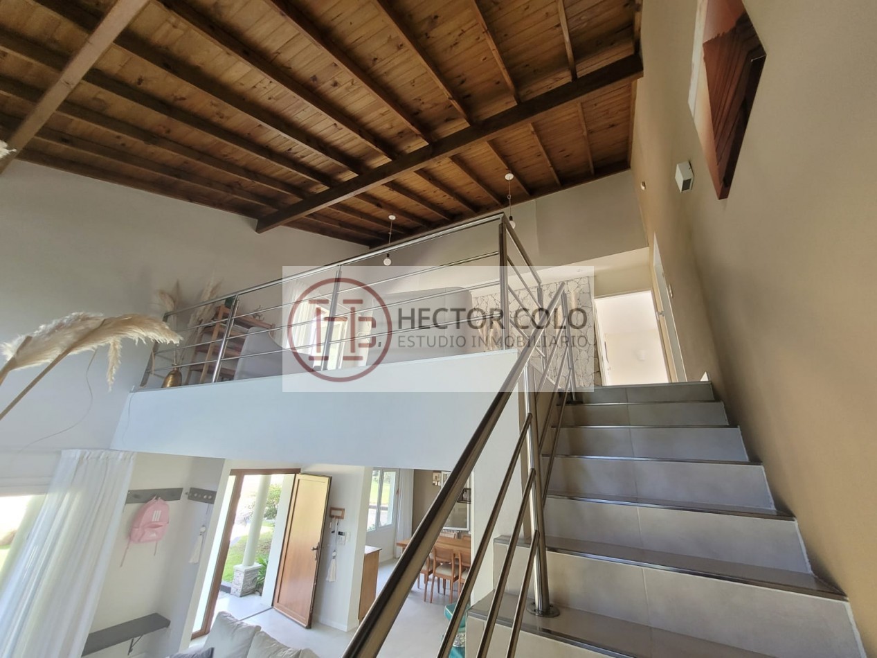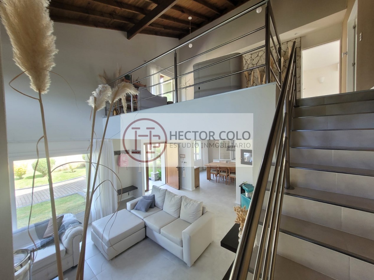 En planta alta encontramos un cómodo playroom con balcón, un dormitorio con placard y baño compartido de doble circulación, y el dormitorio principal en suite con vestidor y terraza privada. La propiedad posee calefacción por radiadores, aportando confort durante todo el año.
