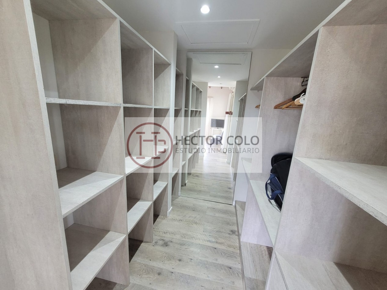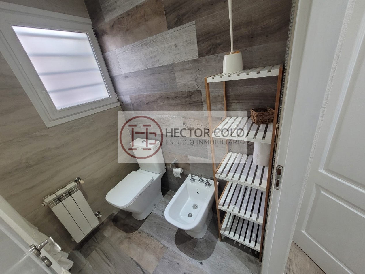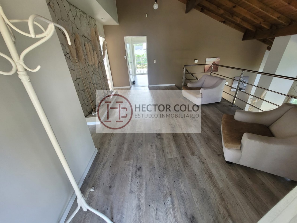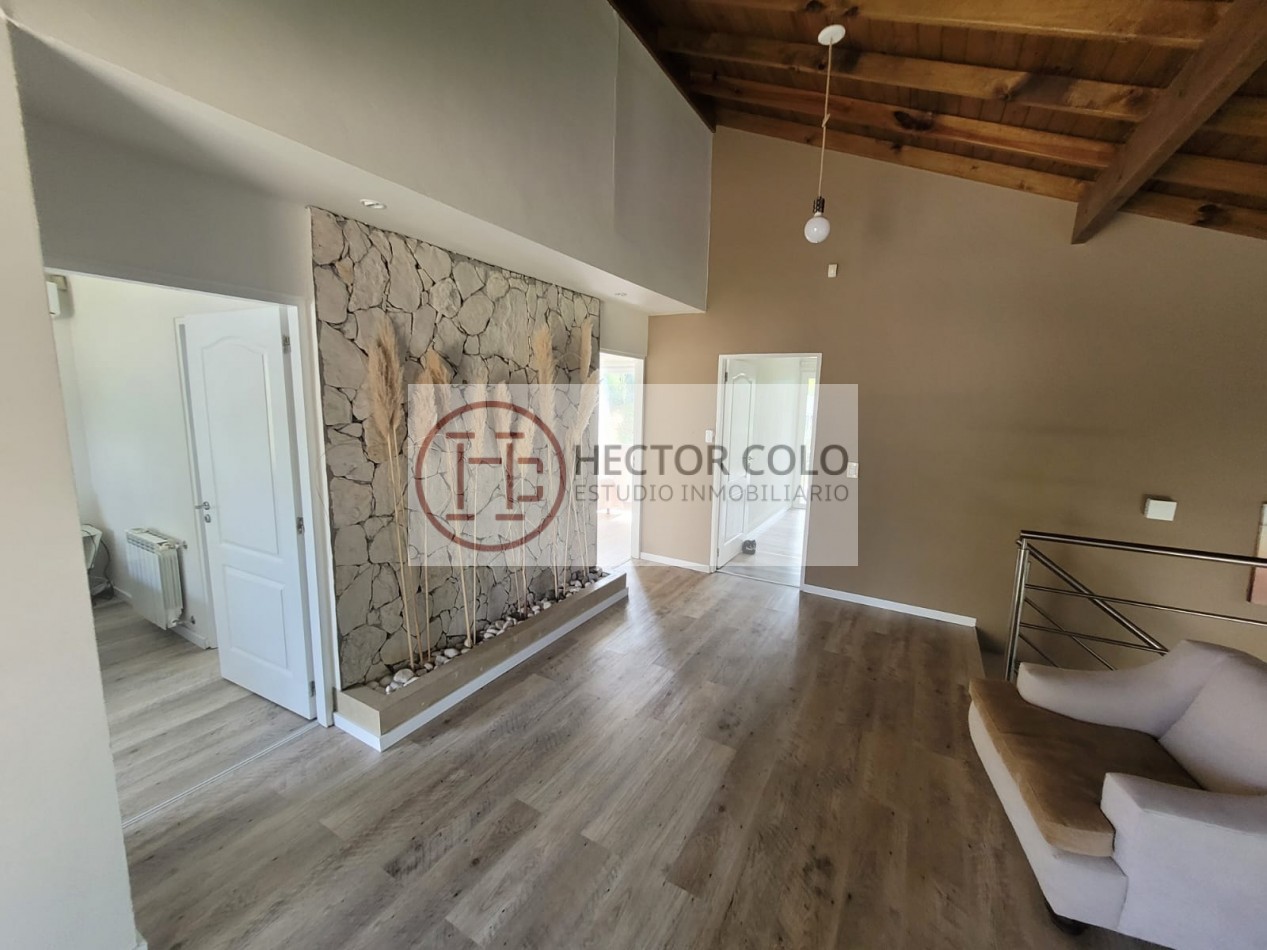 En planta alta encontramos un cómodo playroom con balcón, un dormitorio con placard y baño compartido de doble circulación, y el dormitorio principal en suite con vestidor y terraza privada. La propiedad posee calefacción por radiadores, aportando confort durante todo el año.