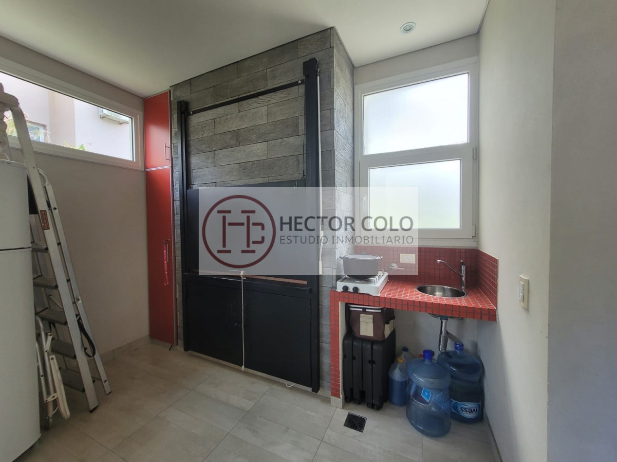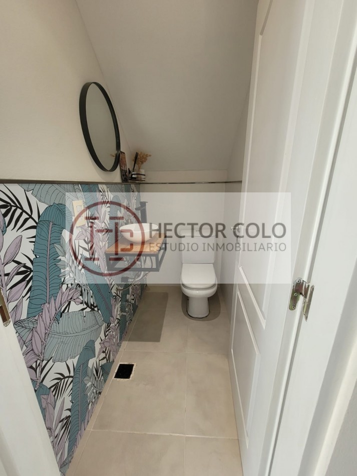 La casa se desarrolla en dos plantas. En planta baja cuenta con cochera y quincho, cocina integrada al comedor, amplio living-comedor, toilette de recepción, lavadero independiente con termo y caldera, además de dormitorio de servicio con baño completo. En el exterior se destaca la parrilla semicubierta y un práctico cuarto de guardado totalmente independiente.