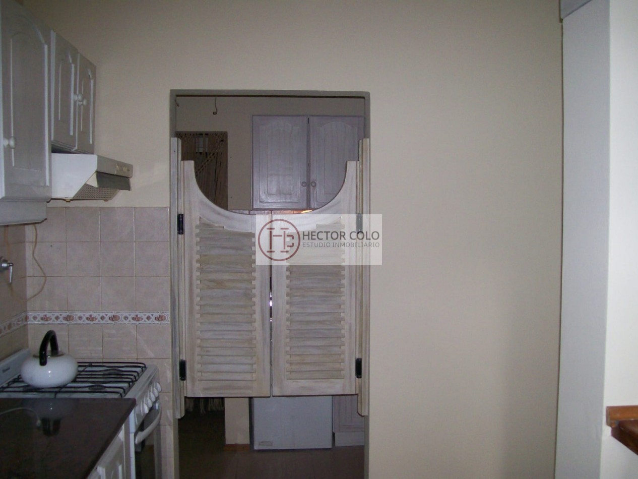 Cocina completa integrada con barra desayunador y lavadero.
