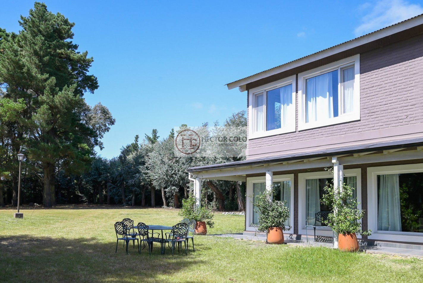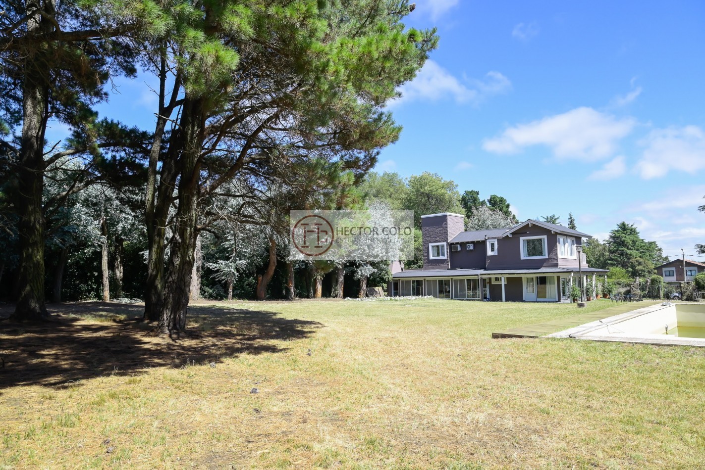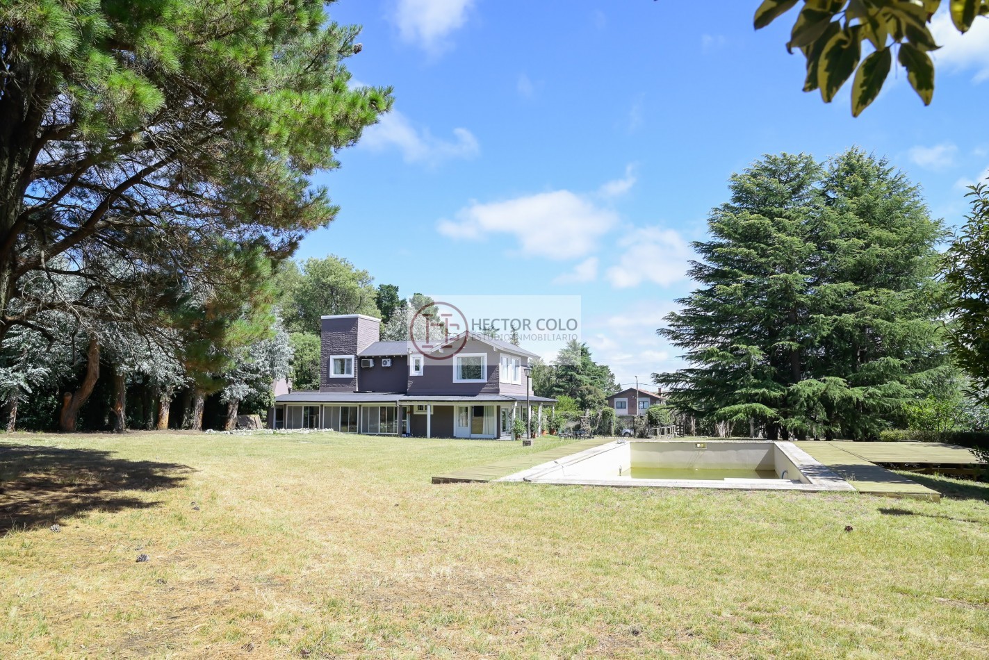 Exterior: Posee un imponente parque arbolado, que garantiza privacidad y una verdadera experiencia de vida en contacto con la naturaleza. Piscina. Cochera techada para varios vehículos. Cuarto de herramientas