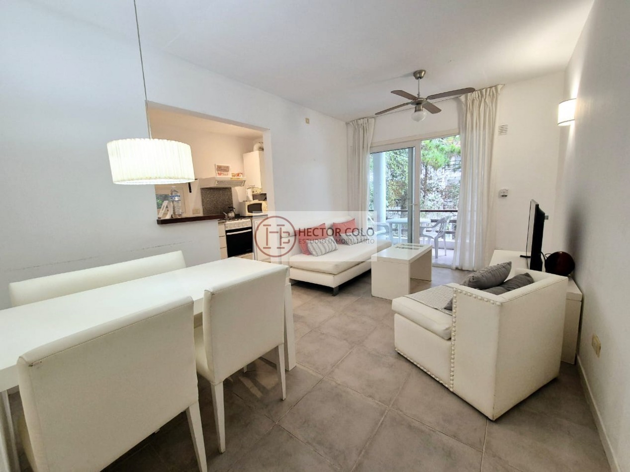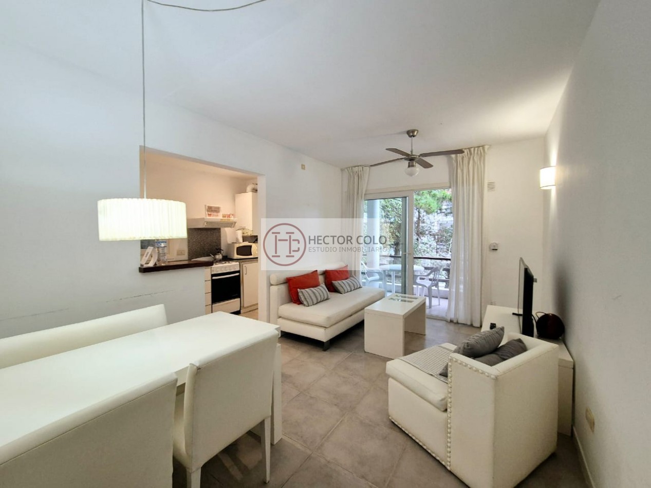 Ubicado a pasos del centro de Cariló, este luminoso departamento de 2 ambientes ofrece confort y funcionalidad, distribuido de la siguiente manera: